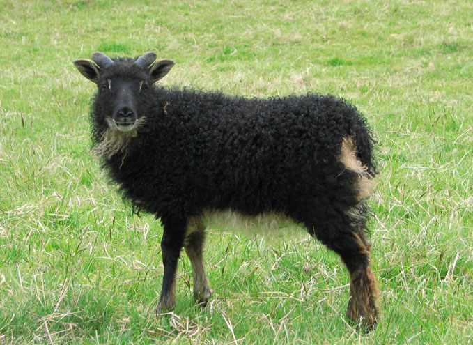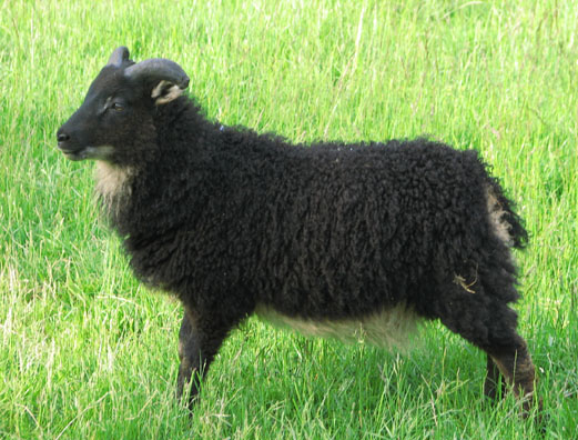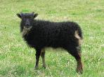 "Just like his sire." Strong, thick and beautiful black mouflon ram lamb. Nice size and fleece quality. We did want to keep him for our own flock, but already have his sire.