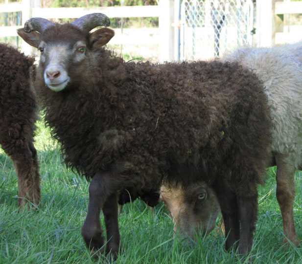 Wonderful soft fleece on dual pattern moorit ewe lamb. Very calm lamb. Out of two 2005 OFFF Winners.